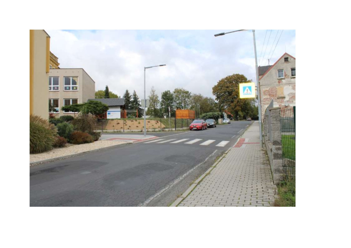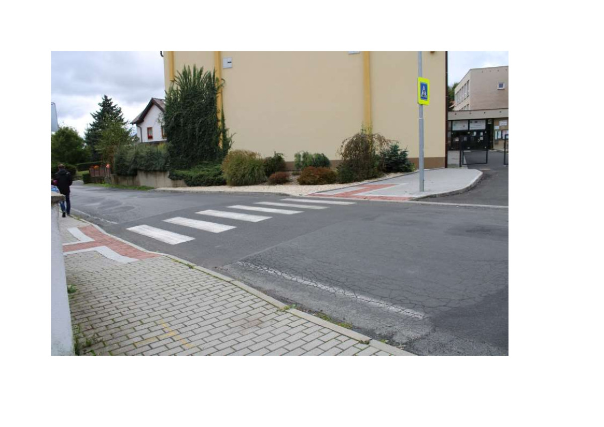 Předmětem realizace projektu byla stavební úprava přechodu pro chodce a úprava plochy sjezdu před základní a mateřskou školou v obci Hazlov. V rámci stavební úpravy sjezdu byla provedena kompletní rekonstrukce konstrukčních vrstev ploch vozovky, chodníkových ploch, nové uspořádání uličních vpustí a nasvětlení přechodů pro chodce, který vede přes krajskou komunikaci II. třídy.
